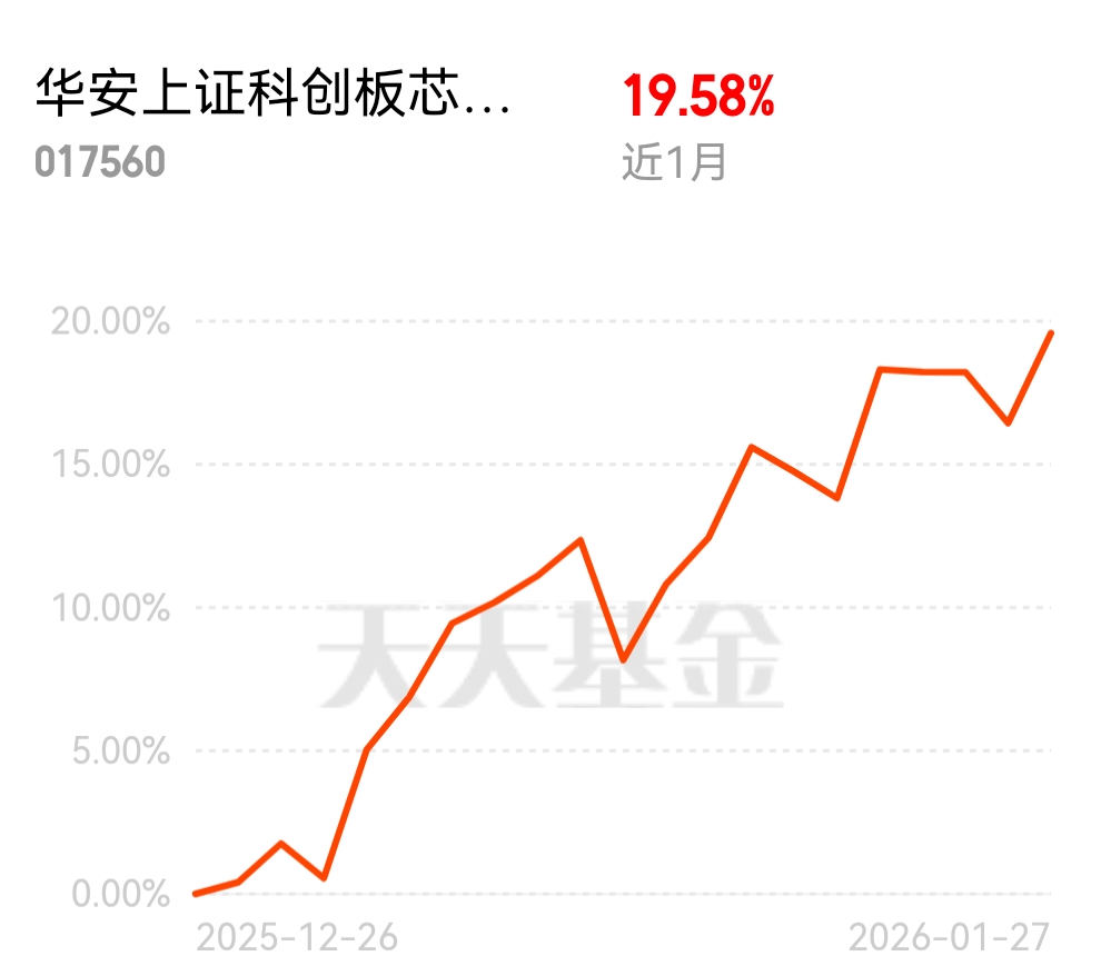 今天果断加仓 $华安上证科创板芯片ETF发起式联接C$ ,华安科创芯片 A 抓牢半导体国产替代核心,指数弹性拉满,近 1 月涨 16.46% 把握行情正当时