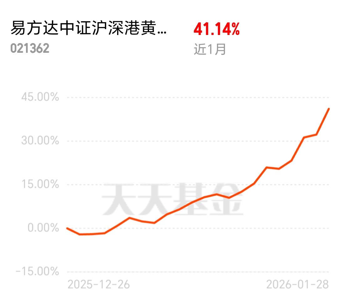 $易方达中证沪深港黄金产业股票指数发起式C$ 当下布局就盯紧金银和有色,黄金股没有限购的限制,收益弹性远胜过实物黄金,把握好这波机会