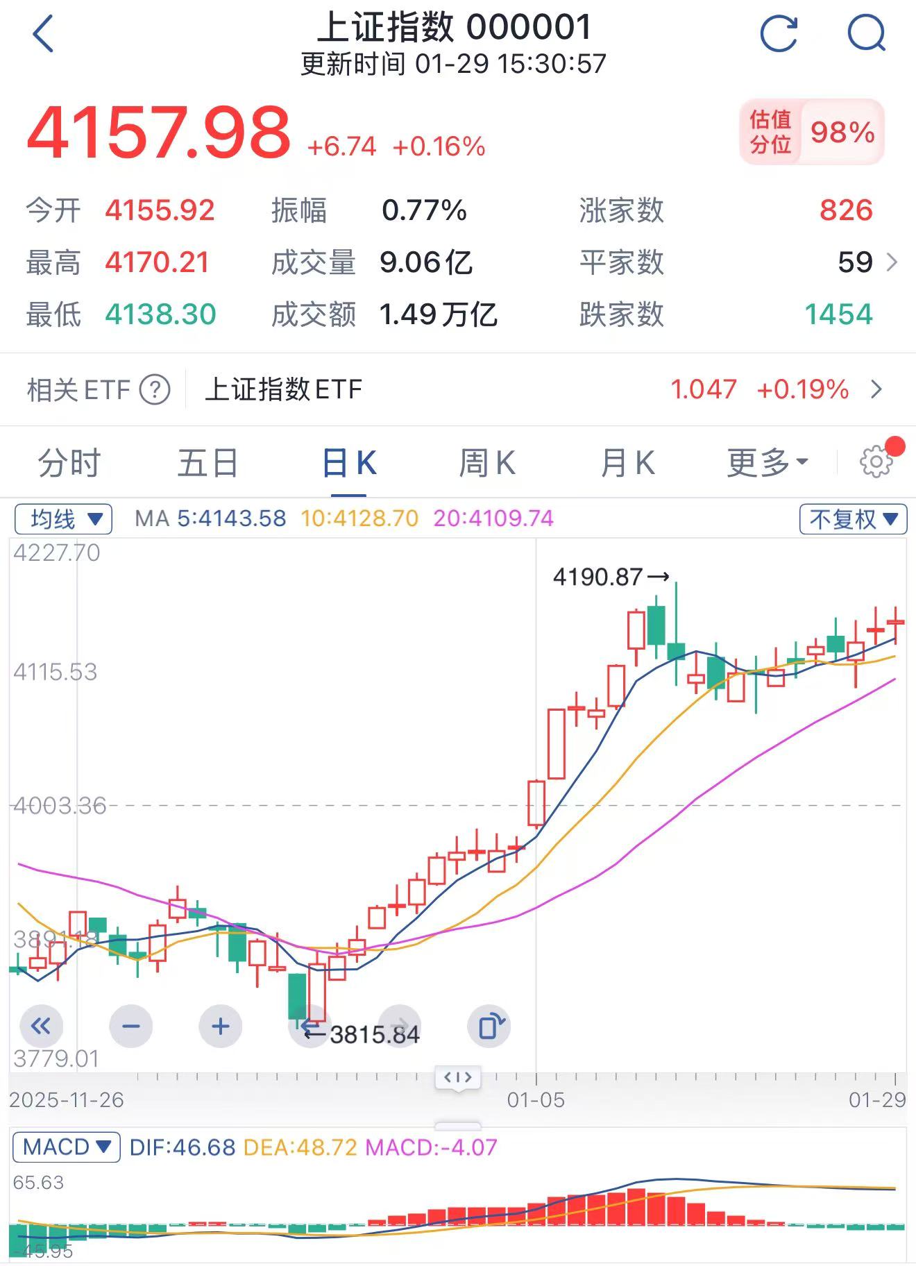 上证指数(涨0.16%,4157.98点)