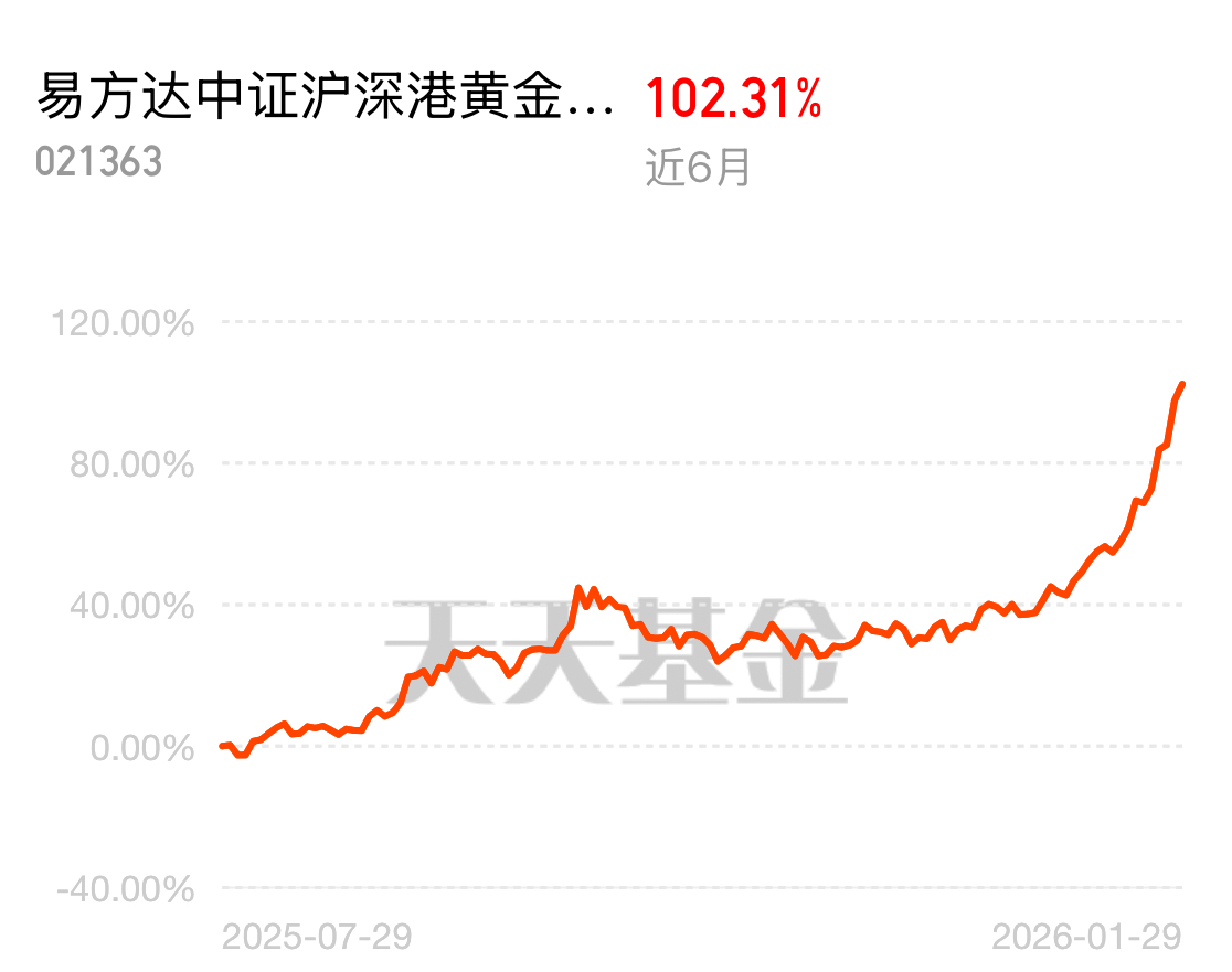 当下布局别跑偏,金银 + 有色就是好方向,黄金股没有限购限制,弹性还远超黄金,把握趋势不吃亏$易方达中证沪深港黄金产业股票指数发起式C$