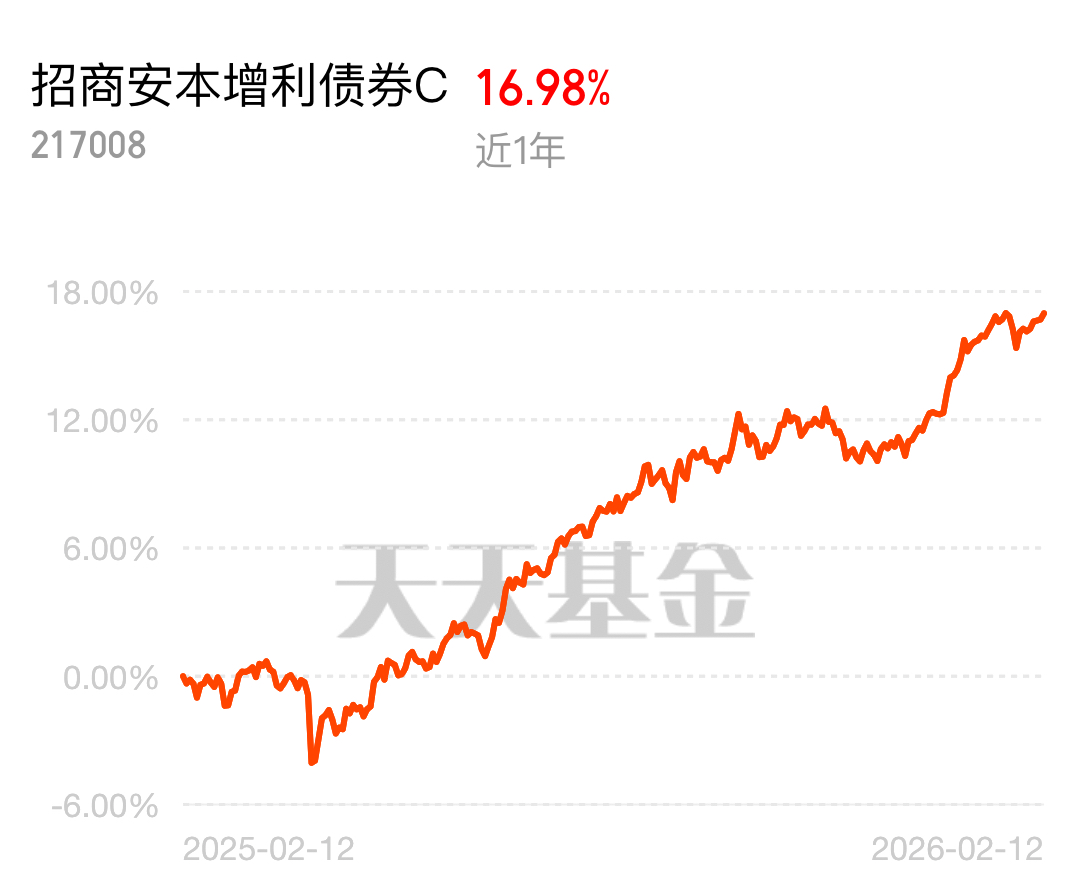 市场波动这么大,我的恒科亏麻了,卫星仓也没起色,全靠招商安本增利债券 C 撑着。近一年 17%,今年以来 4.15%,连涨 5 天,昨日还涨 0.25%。当下位置正合适,继续布局,稳稳的底仓比啥都强,持基过年就它了!$招商安本增利债券C$