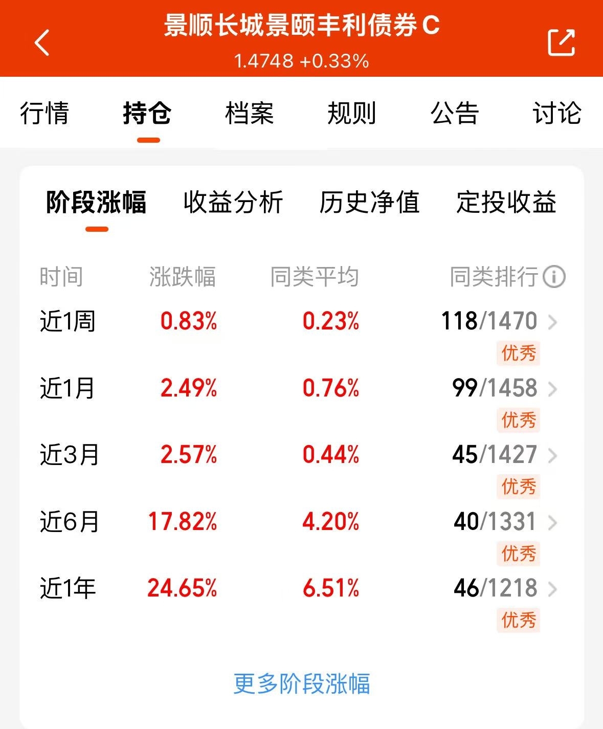 涨超其他混债的景颐丰利可以啊,最近表现不错收蛋嘎嘎猛,年底市场风格轮动大,求稳买