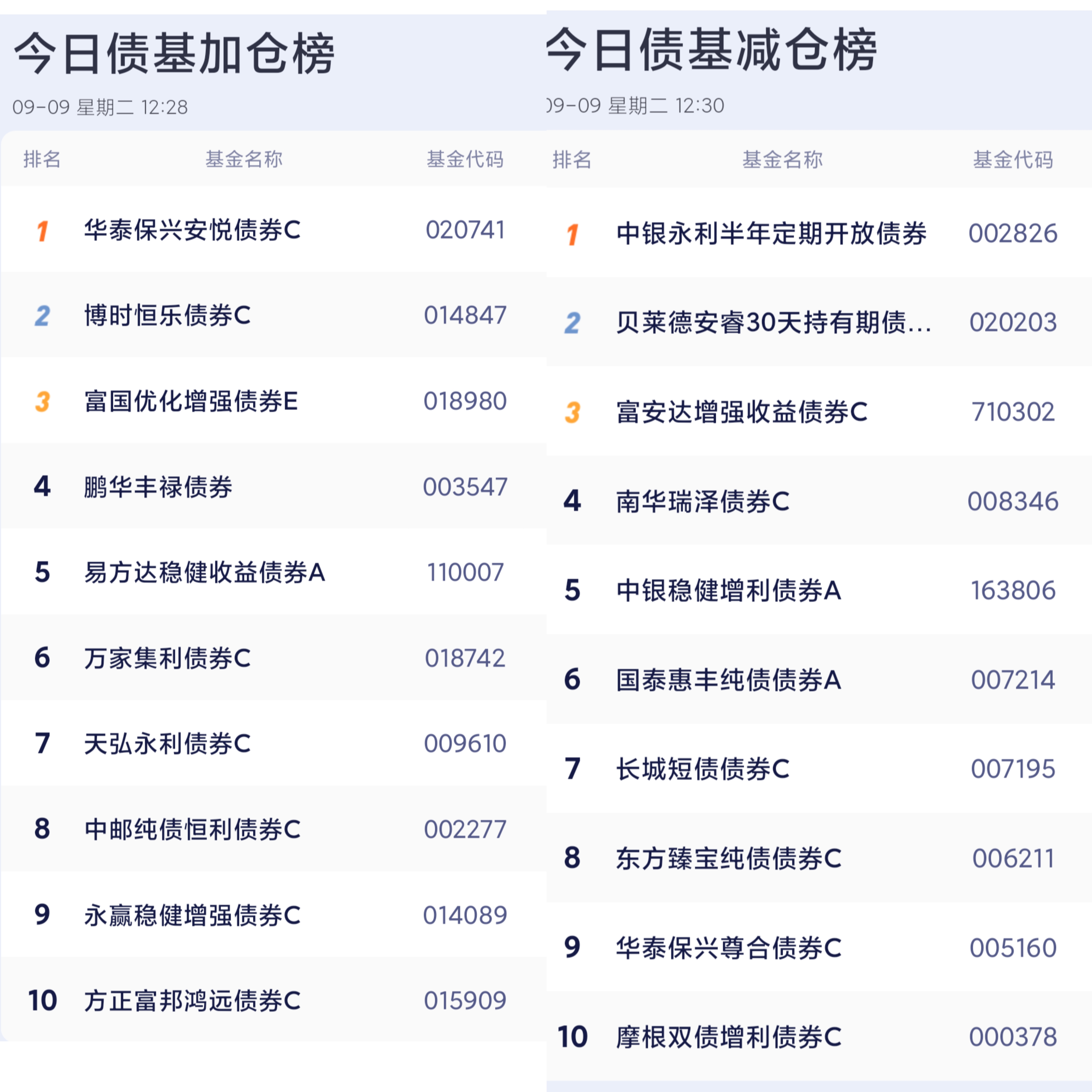 六、债券基金加减仓榜单