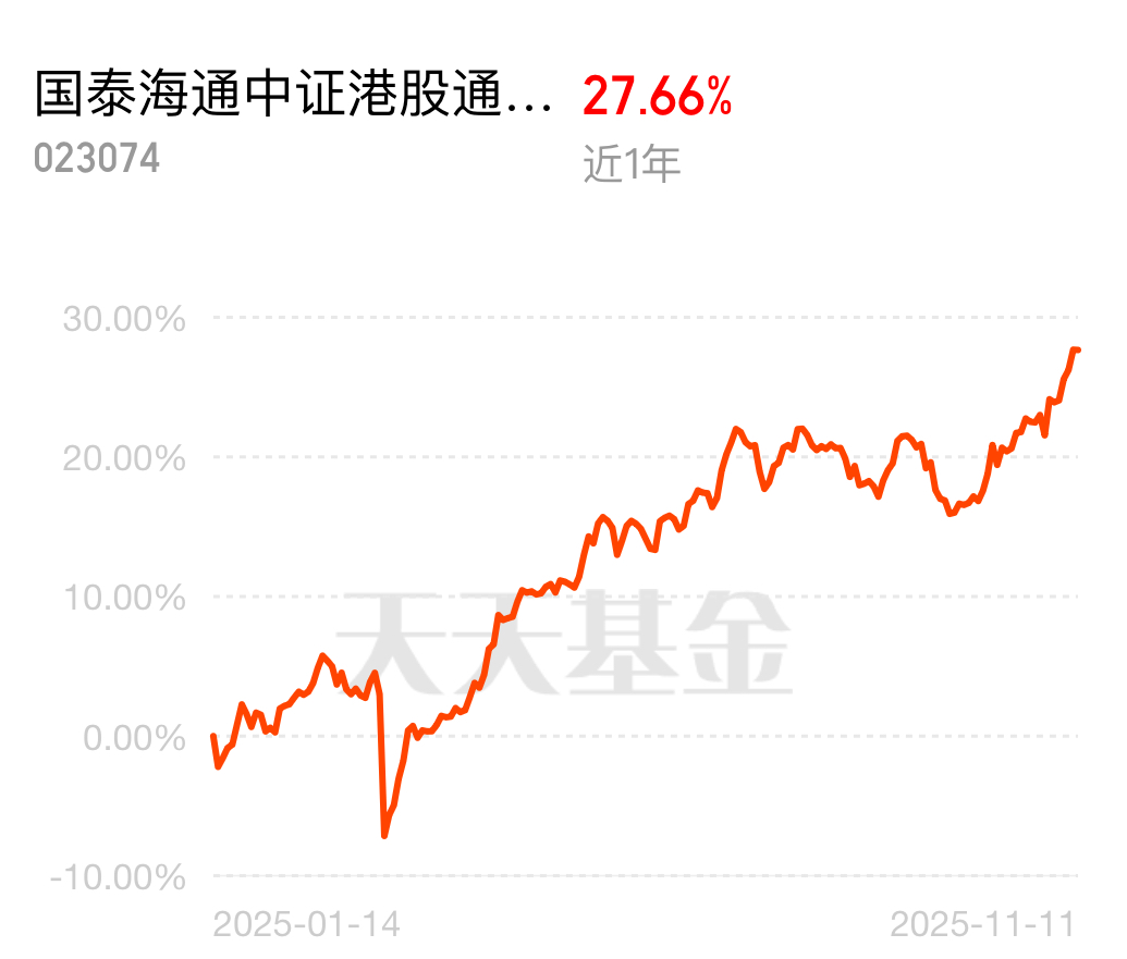 国泰海通高股息跟踪港股高股息指数,今天指数盘中预计有0.5%,10月8号以来一直大涨小跌,跟踪港股高股息指数,相当于港股的红利指数,年初成立到现在收益率26%,同期中证红利才10%