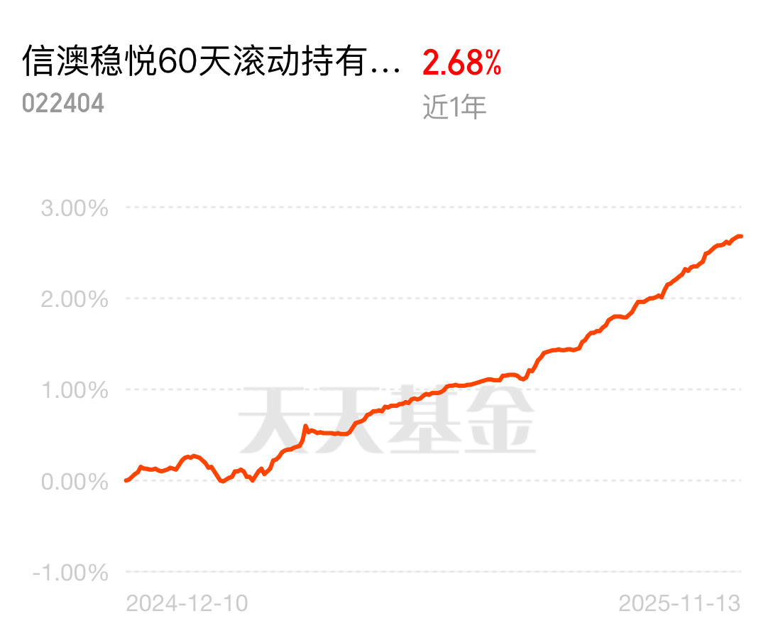大家都在找好基,债市也给力争气信澳稳悦60天凭真本事吃饭,变化2.68%远超银行,闲钱放这儿感觉更值