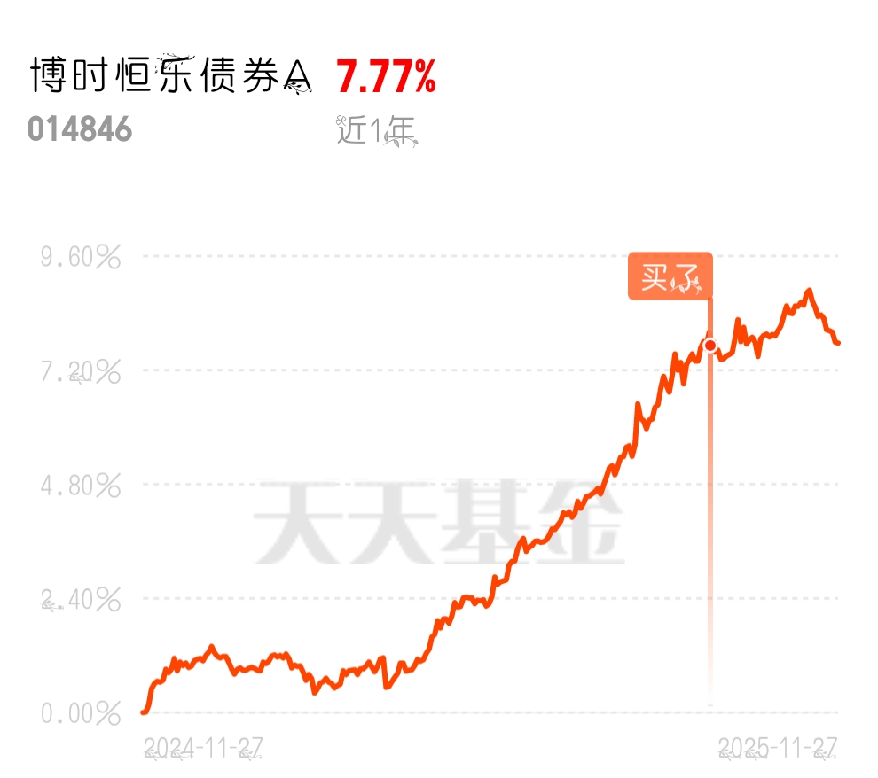 波动行情里,低波固收+拿着踏实,$博时恒乐债券A$ 债基底子稳,权益增强收益,六个月5.29%的收益,很自足了,加上十月份分红到手50多,持有体验很好!基金经理目光长远,最近限购从500万降到了100万,这规模控制得好了,业绩才更持久。这只基金的债券底仓太扎实了!基金主要配置了政策性金融债和超长期特别国债,这些债券不仅信用风险低,还能享受免税红利,税后收益比普通债券高出不少。尤其是近期央行重启暂停近10个月的公开市场国债买卖,当月净投放200亿元,这个信号太重要了!央行购债直接带动长端利率债需求上升,10年期国债收益率已经逐步下行,这只基的债券仓位正好能吃到这波红利。加上11月央行还加量续作MLF,市场流动性宽松,债券价格稳步上涨,这部分收益就很扎实。其权益仓位权益仓位也很给力!三季度在权益端布局了贵金属、风电油运这些细分景气板块,最近国际金价上涨,国内风电项目密集落地,这些板块都有不错表现,正好给基金净值添了助力。现在A股3800点附近,很多人担心追高风险,但这基的权益仓位是“小而精”的布局,既不会因为股市波动影响整体稳健性,又能在结构性行情中赚收益,逢低布局时机不错。#小摩:超配中国! 调整是买入时机#