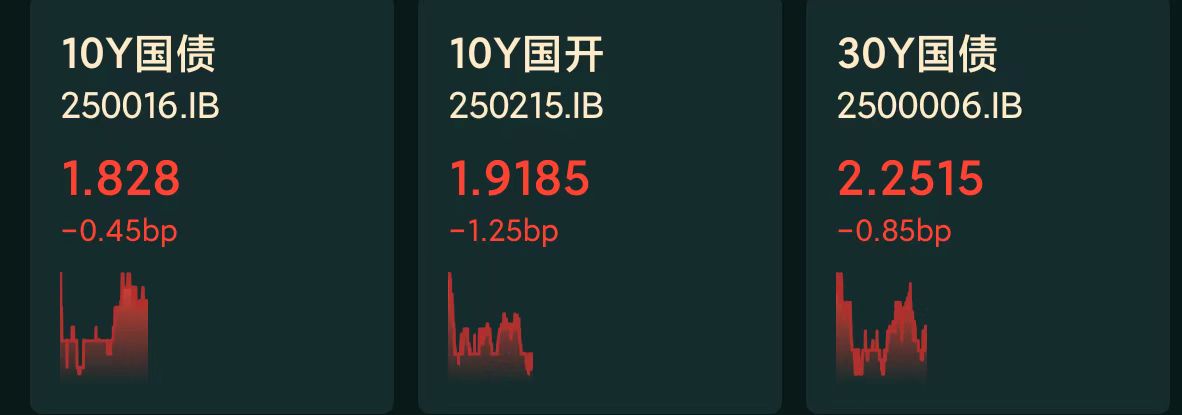 十年期国债收益率:1.828%,-0.45BP(国债收益率越跌,债市越涨)