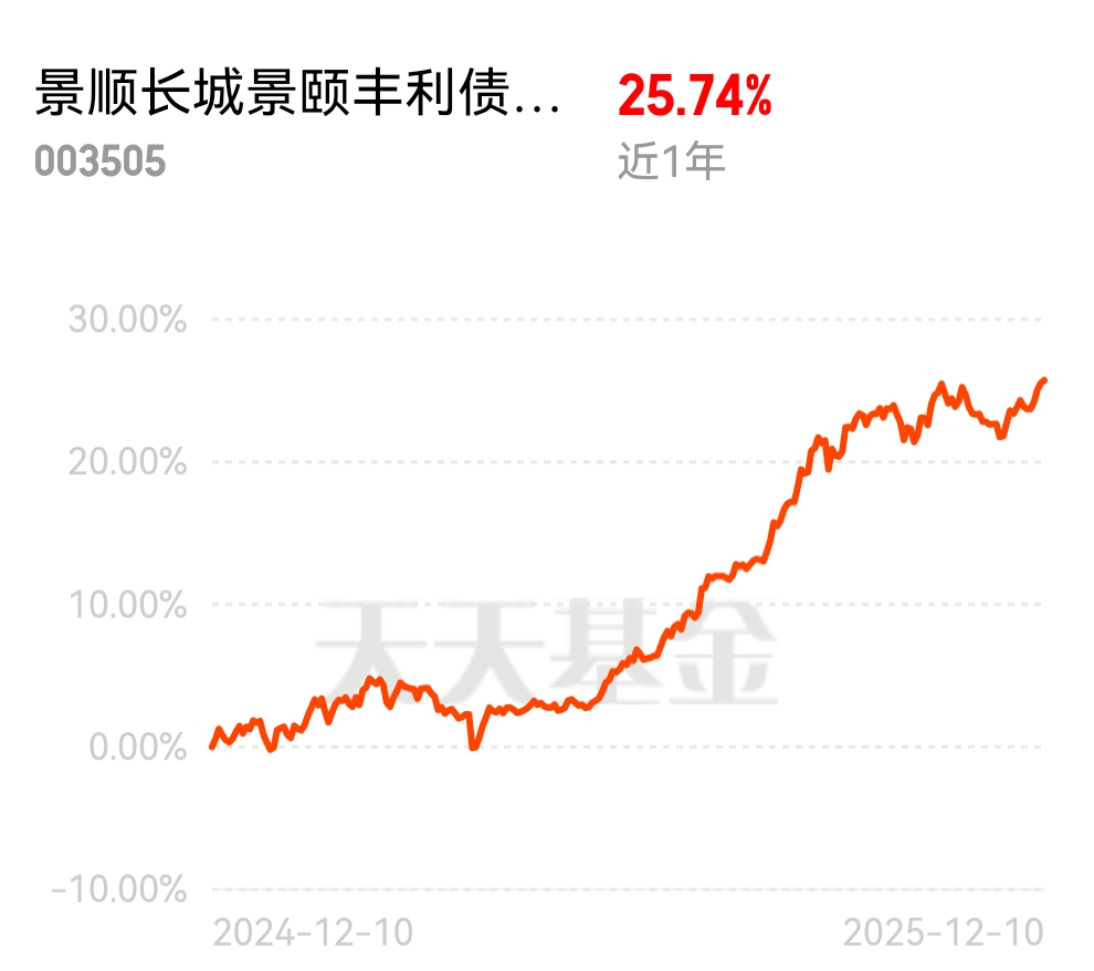 #2025即将收官 明年怎么投?# 看了眼自己账户,全是高波动的股基,年底心里有点慌,而景颐丰利含科技的混债基,反弹大、修复快,近一年收益25%,回撤小收蛋还多$景顺长城景颐丰利债券C$