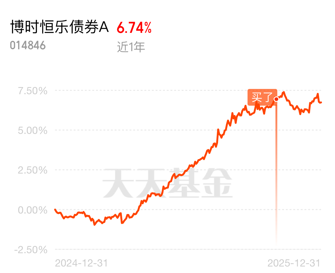 可以啊!债市行情一来,$博时恒乐债券A$ 净值就往上走,这波又收蛋了。算下来半年能有440多个蛋,这赚钱能力挺稳的。近期地方债置换收官和隐性债务化解提速。据悉,6万亿置换债券收官将为地方节约利息约4000亿元,362家城投公司公告不再承担政府融资职能,这对债市信用风险缓释起到了关键作用。这基的债券仓位中,信用债配置占比不低,基金经理通过严格的信用分析筛选优质个券,在化债政策的加持下,信用债的违约风险大幅降低,同时收益稳定性显著提升。中泰证券固收首席分析师也提到,年底资金相对宽裕,短端利率持续下行,博时恒乐注重中短端高收益品种配置,正好能抓住这波行情。这基权益仓选股精准,中国宏桥、宏创控股都是低估值的优质企业,中国宏桥作为铝行业龙头,受益于新能源行业发展,目前市盈率处于低位,具备较高的投资价值;宏创控股在有色金属加工领域有核心竞争力,随着行业景气度回升,业绩有望持续改善。现在低市盈率板块的估值修复行情已经悄然启动,同花顺数据显示,12月末低估值板块头部个股成交量明显放大,资金正在加速布局,当前配置时机正好。#2026我的新年投资计划#