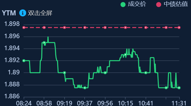 二、十年期国债收益率:1.886 -0.0115%(国债收益率越涨,债市越跌,两者反向关系)