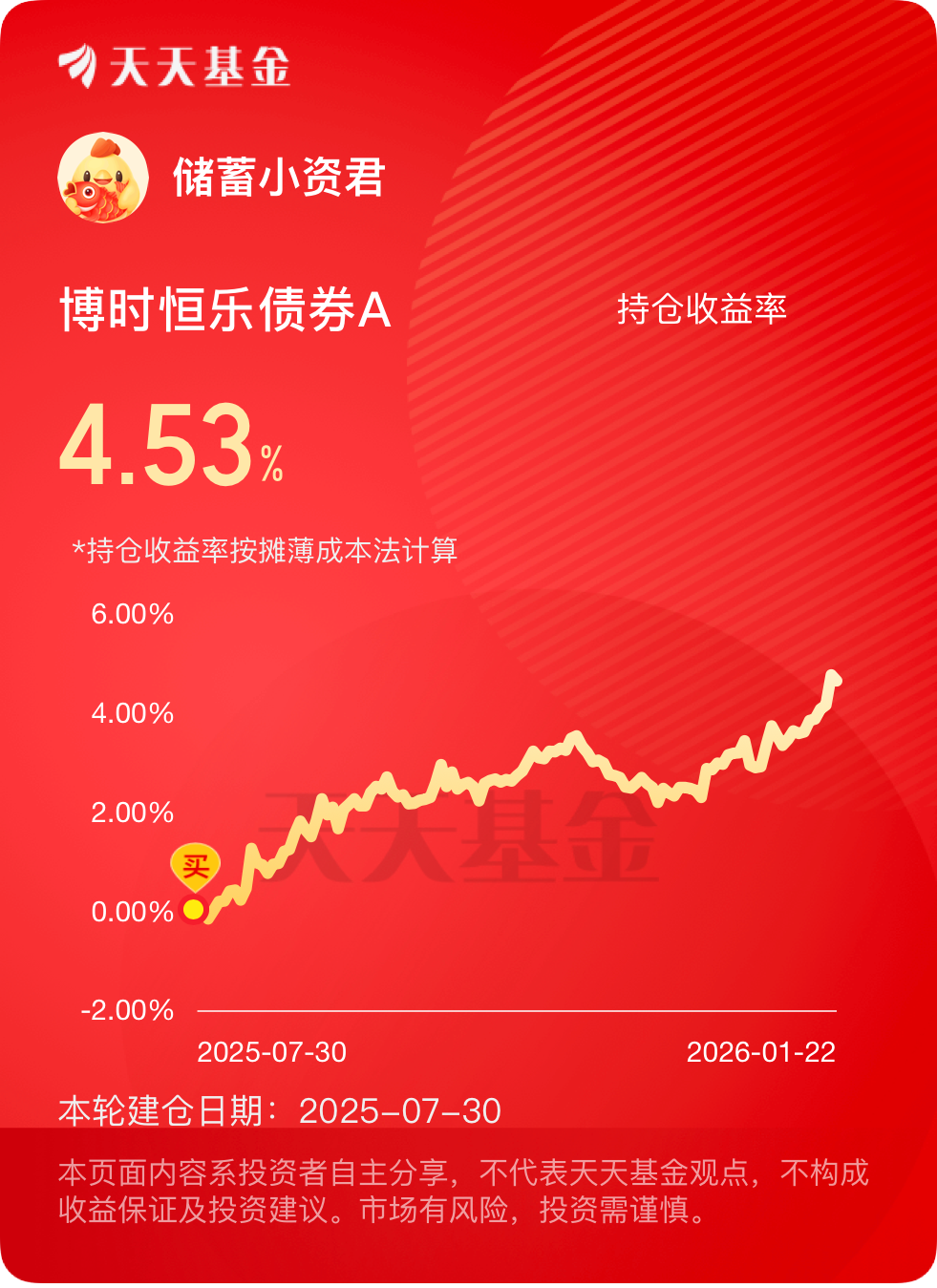 这行情在4100点反复震荡,看着有机会,下手又怕踩雷,这时候低波固收+就很讨喜了。$博时恒乐债券A$ 债券底仓求个稳,再用股票部分去搏一搏,近一周涨了0.77%,近一年收益都超过9%了,能守又能攻。近期央行结构性降息刚落地,直接给债市吃了定心丸。这次下调了再贷款、再贴现等结构性工具利率0.25个百分点,其中1年期支农支小再贷款利率从1.5%降到1.25%,还额外加了5000亿支农支小再贷款额度,单设1万亿民企再贷款。这波操作直接降低银行体系负债成本,让银行间市场资金更宽松,DR001、DR007这些核心回购利率已经开始下行,对恒乐这只债券占比80%左右的基金来说,简直是精准利好。恒乐不仅债券稳,它的权益仓最近更是踩中了热点!刚更新的年报显示,前十大重仓股新增了中国平安、中信证券这些大金融龙头,还有万华化学、藏格矿业等资源股。最近大金融板块估值处于低位,随着市场流动性宽松,资金肯定会往低估值蓝筹流,中国平安作为保险龙头,后续上涨潜力不小;藏格矿业、盐湖股份这些资源股,受益于大宗商品价格企稳回升,刚好能给基金收益做增强。这基稳中有增的配置,非常适合当前的市场环境。##高盛上调金价目标至5400#