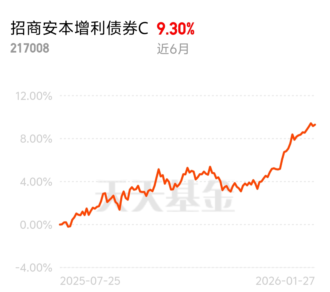 今年想布局债基的别错过招商安本增利债券 C,近 6 个月收益 9.30% 很能打,基金经理深耕有色化工领域,对当下行情把握精准,机构持有比例高,专业认可的产品更放心。$招商安本增利债券C$