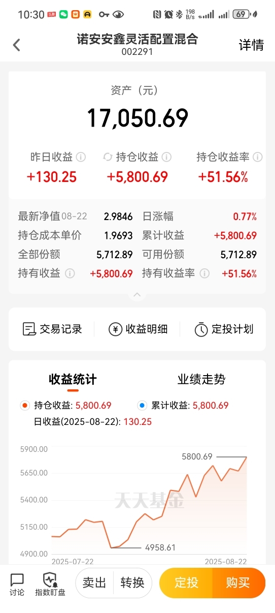 $诺安安鑫灵活配置混合$难以置信,这是我涨得最好的鸡