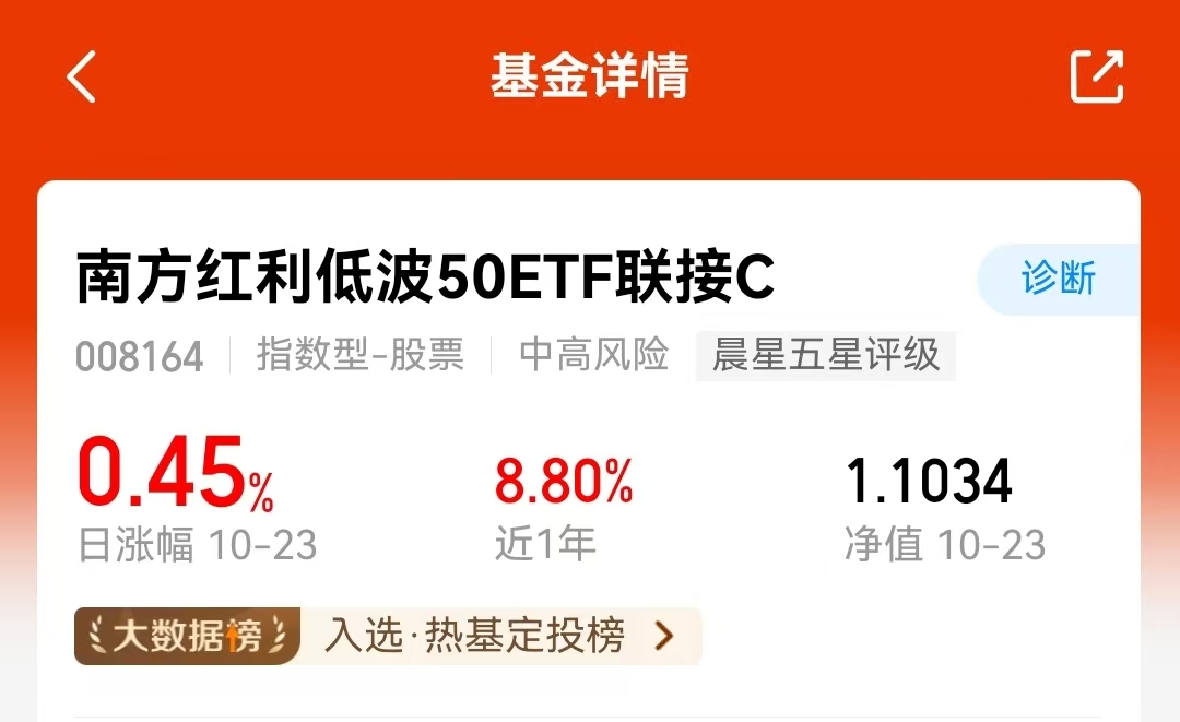 市场经历上涨后,估值修复明显,接下来业绩的确定性可能会更受关注。$南方红利低波50ETF联接C$(008164)所投资的标的,很多是所在领域的成熟企业,盈利模式相对清晰。在市场整体估值提升后,这些基本面稳健、且有持续分红能力的资产,其性价比可能会重新得到审视。如果市场情绪出现波动,这类资产的回撤幅度历史上看相对可控。在当前时点关注此类基金,可以看作是一种思路,既不错过市场可能的机会,也为投资组合增添一份稳定性。#黄金创12年来最大单日跌幅!什么信号#