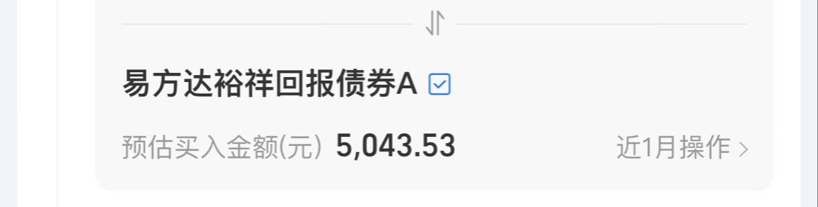$易方达裕祥回报债券A$ +5K,这个月股市和可转债真的好强,几乎大部分时间都是上涨的,混债的话其实类型也比较多,有低波,中高波,我自己是比较喜欢波动小一点的,因为持有期间压力比较小,收益又不差那种。今天继续补仓一笔易方达裕祥回报债券A,它是一只中高波固收+,信用债为主+利率债波段,同时还有19.85%的权益在大盘好的时候增厚收益,近一年收益率7.39%,近十年上涨了98.83%,属于老牌绩优基,成立10年了,业绩表现稳定,继续定投一笔。