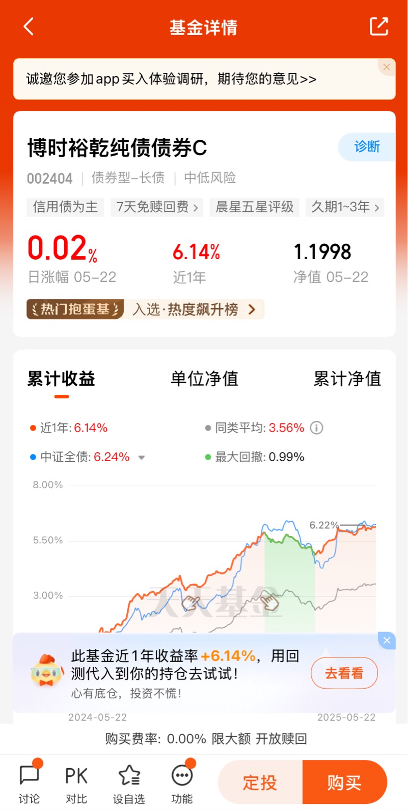 在选择具体投资标的时,可以重点关注那些业绩稳定、风险控制能力强的债基产品。博时裕乾纯债债券C基金作为其中的佼佼者,就是一个值得考虑的投资选择。债市波澜壮阔,稳健投资方能行稳致远!从业绩表现来看,博时裕乾纯债债券C基金也展现出了不俗的实力。截至2025年5月20日,基金近3年涨幅为14.91%,大幅跑赢同类平均。同时,基金的净值增长率也保持在一个相对稳定的水平,为投资者提供了良好的投资体验。多样的投资策略、长期的投资视角以及稳健的业绩表现,都使得博时裕乾纯债债券C基金成为我在构建固定收益类投资组合时的优选之一。@博时基金
