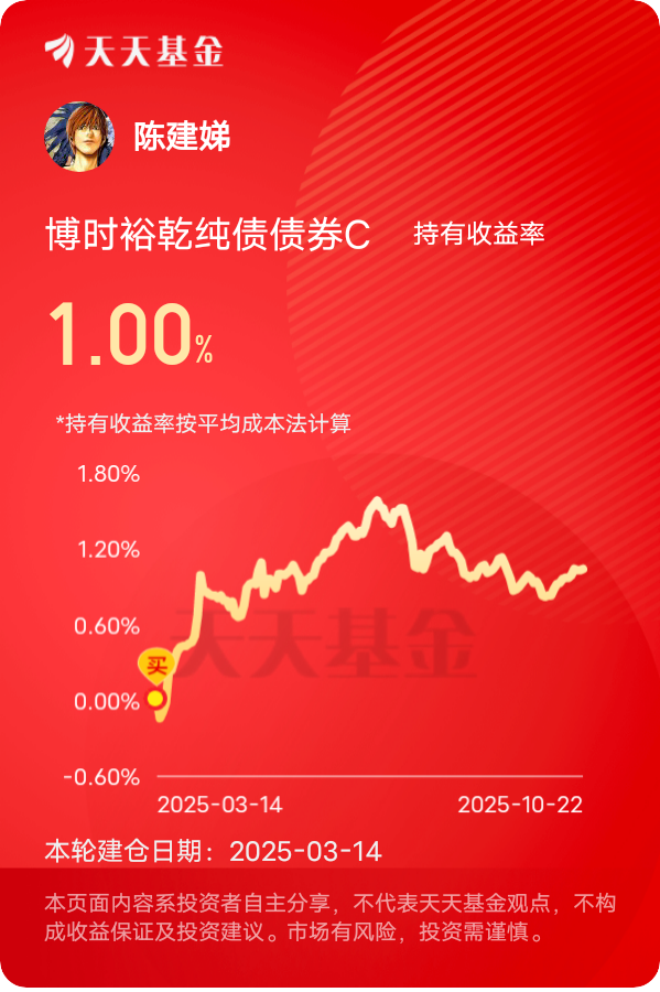 追求低波动,纯债是基本盘,配点博时稳健增利寻求增强。昨天两边都红,这路子对了!#晒收益#