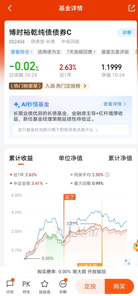 我的策略是,纯债是基本盘,必须要配,固收+做补充,增强收益。博时稳健增利,半年下