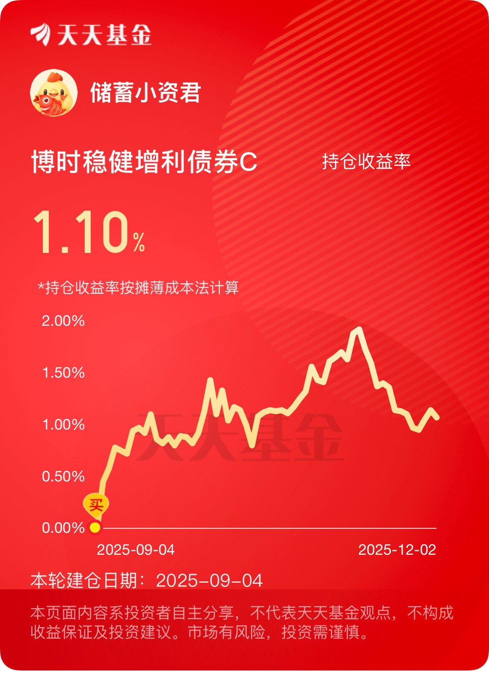 震荡市要配低波资产,$博时稳健增利债券C$ 近一年收益8%以上,主要回撤控制得好。我的策略是越跌越买,积累份额,等风来~