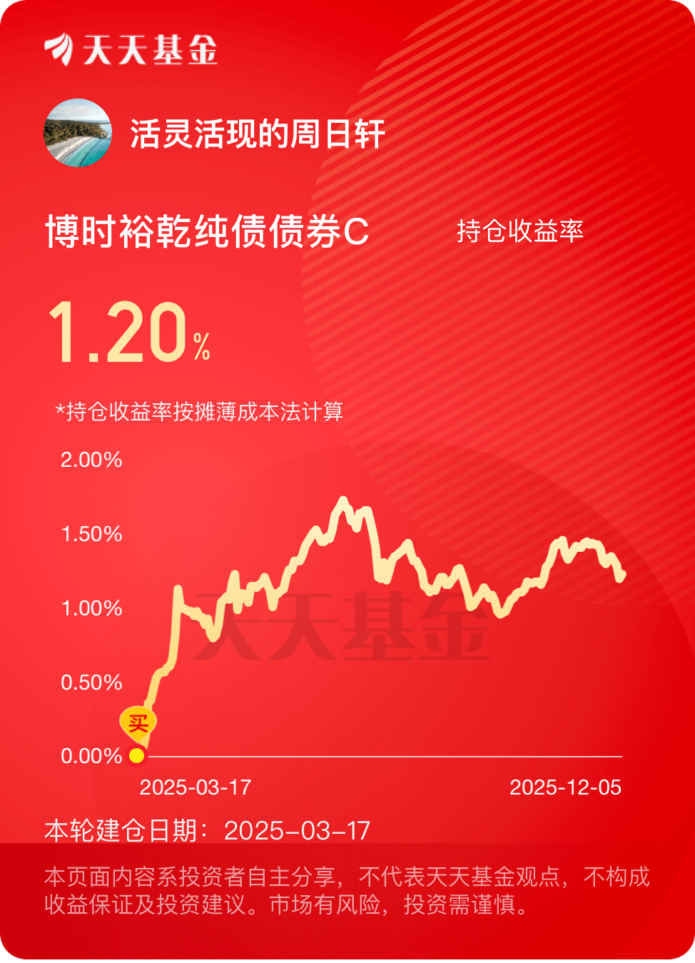 纯债加上固收+的配置确实不错,裕乾步步为营。$博时稳健增利债券C$更是个猛将,一天爆了27个蛋,这波必须点个赞!#晒收益#