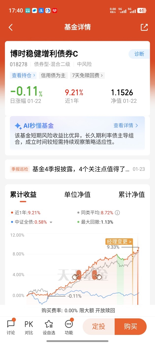 裕乾这次表现真不赖,走得稳扎稳打。$博时稳健增利债券C$权益部分踩点精准,新能源