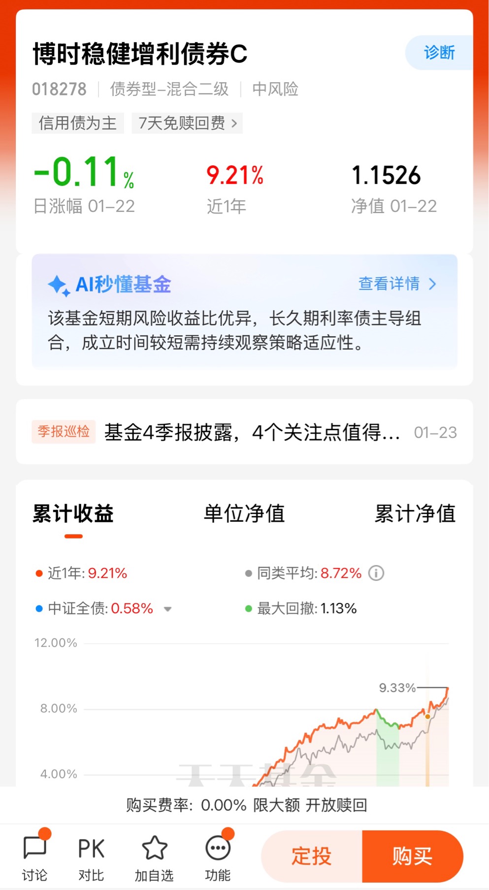 现阶段固收+策略占优,股债两边都有机会。$博时稳健增利债券C$ 权益仓押中有色和AI,一周收蛋70多,一季度行情才刚开始!