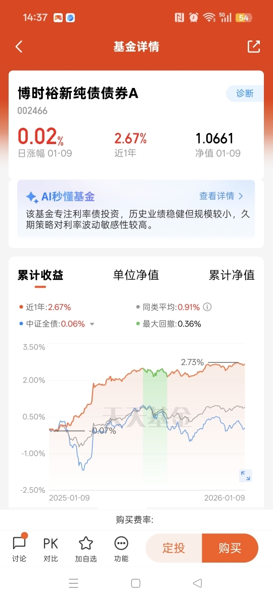 债市回暖,成功拿下两个蛋。开年银行指标压力小了,配置力量增强,这基主投政金债,安