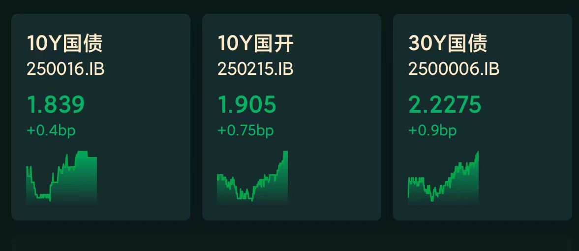 十年期国债收益率:1.839%,+0.4BP(国债收益率越跌,债市越涨)