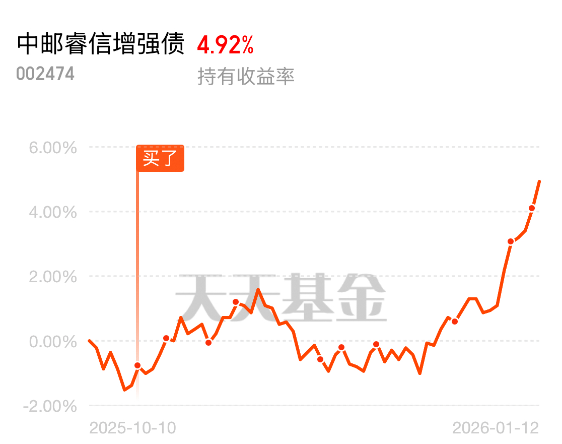 股债双收,固收+基金中邮睿信增强债继续爆蛋!今晚喜提84个蛋,已经8连涨了。真的是2026年开始每天都在赚钱啊,稳中求胜!