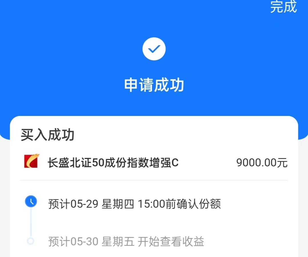 长盛北证50成份指数增强C$ (021766),今天又涨了,这个板块资金流入多,业绩表现好,最近1个月上涨5.74%排名优秀,成立以来14.59%,而且超过7天无手续费的,交易非常灵活,关键是后面向上空间大,今天我决定继续上车了