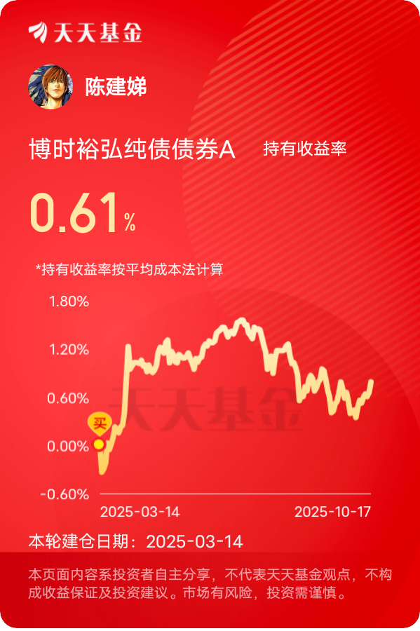 经济数据偏弱,货币政策难收紧,对债市友好。这基持仓都是高等级债,近期收蛋很积极,配置价值还在。#晒收益#