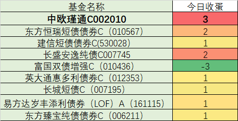 债市小幅回暖,这波反弹很是给力,看看今天的收蛋情况, $中欧瑾通灵活配置混合C$ 收3个蛋,长盛安逸纯债C007745收了2个蛋,易方达岁丰添利债券(LOF)A(161115)收了1个蛋.最近市场波动大,但中欧瑾通灵活配置混合C(002010) 依然很稳,近一年7.51%的收益,作为“固收+”产品,均衡配置就是抗跌,适合拥有。#17连阳!A股日成交达3.6万亿元创历史新高#