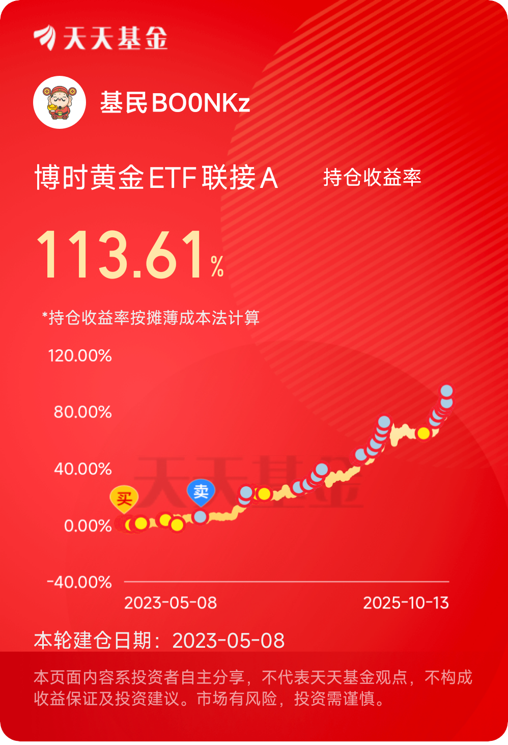 $博时黄金ETF联接A$实力黄金鸡,每月都在帮我赚零花钱。