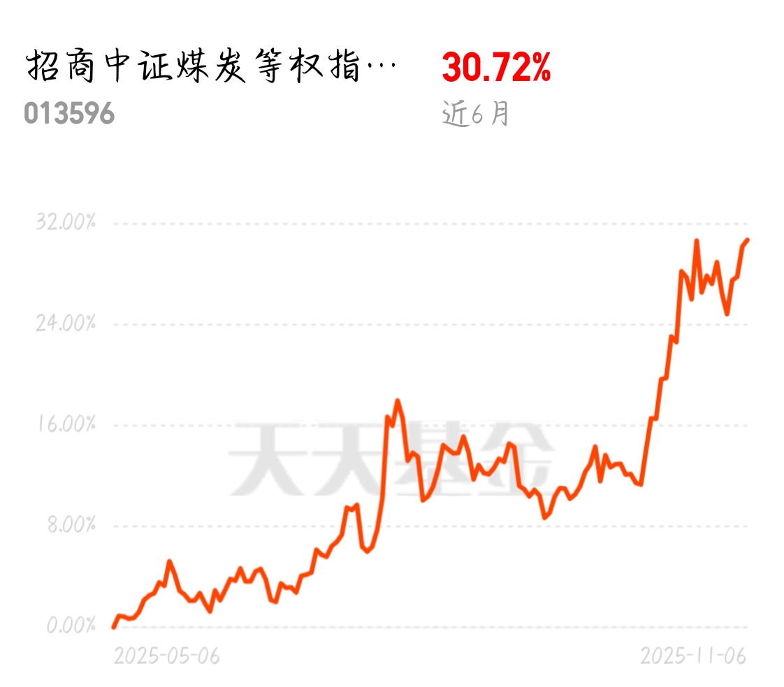 煤炭市场看涨氛围浓厚,资金持续流入板块,推动行业估值上行。招商中证煤炭等权指数C近6个月涨了30.72%,昨日涨幅0.40%,顺应资金流向,业绩表现稳健。