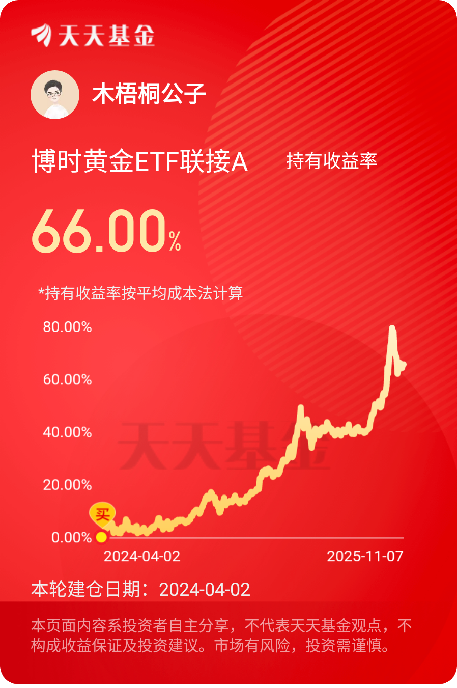将黄金视为资产组合中一位沉稳的“压舱石”伙伴,用纪律和策略来应对市场的风浪。如此,无论市场如何起伏,木同学希望自己都能保持内心的平静,在风险中识别机会,在波动中稳健前行。@博时基金