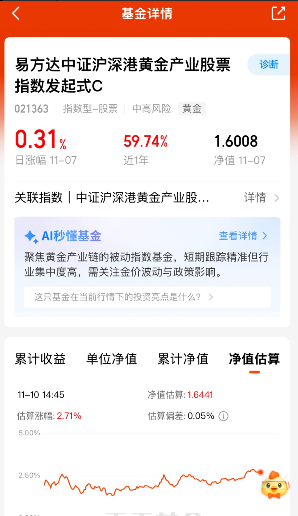 黄金今日表现超不错,同类中这只业绩挺好,好机会别犹豫呀$易方达中证沪深港黄金产业