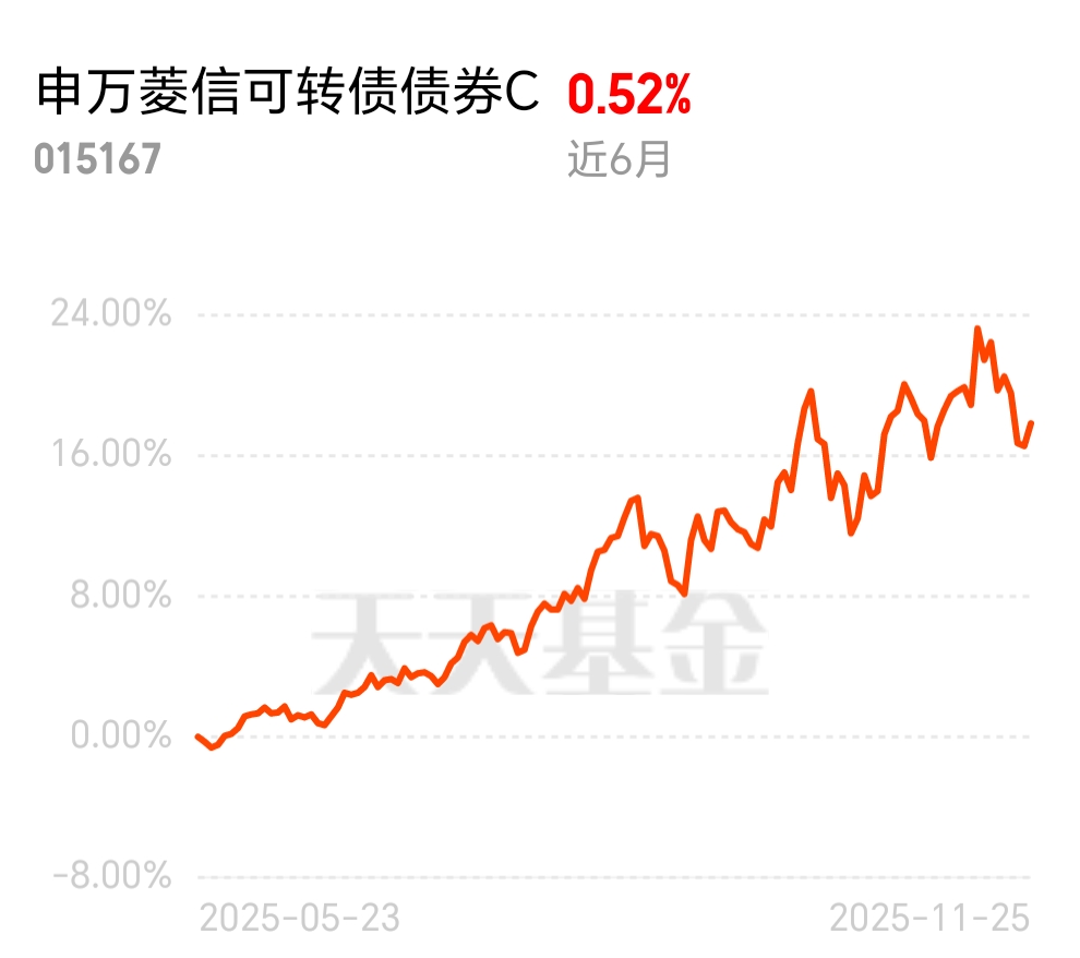 近期市场波动有点大,想赚钱又怕亏的朋友别愁,申万菱信可转债C可以考虑。固收打底抗