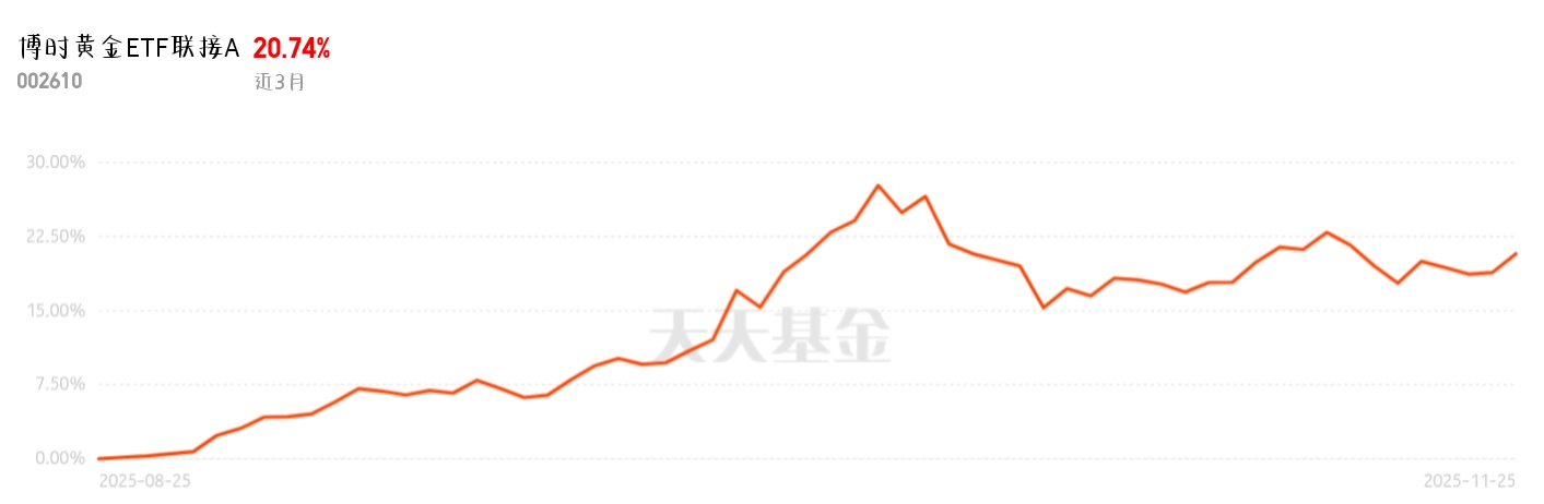 近一年涨得挺不错,比同类平均表现好不少,规模大、风控稳,黄金的避险优势它都能跟上