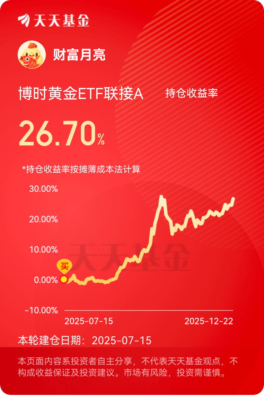 最近看黄金走势有点猛,央行月月增持,机构也都在吹,手里的博时黄金总算没白拿,继续