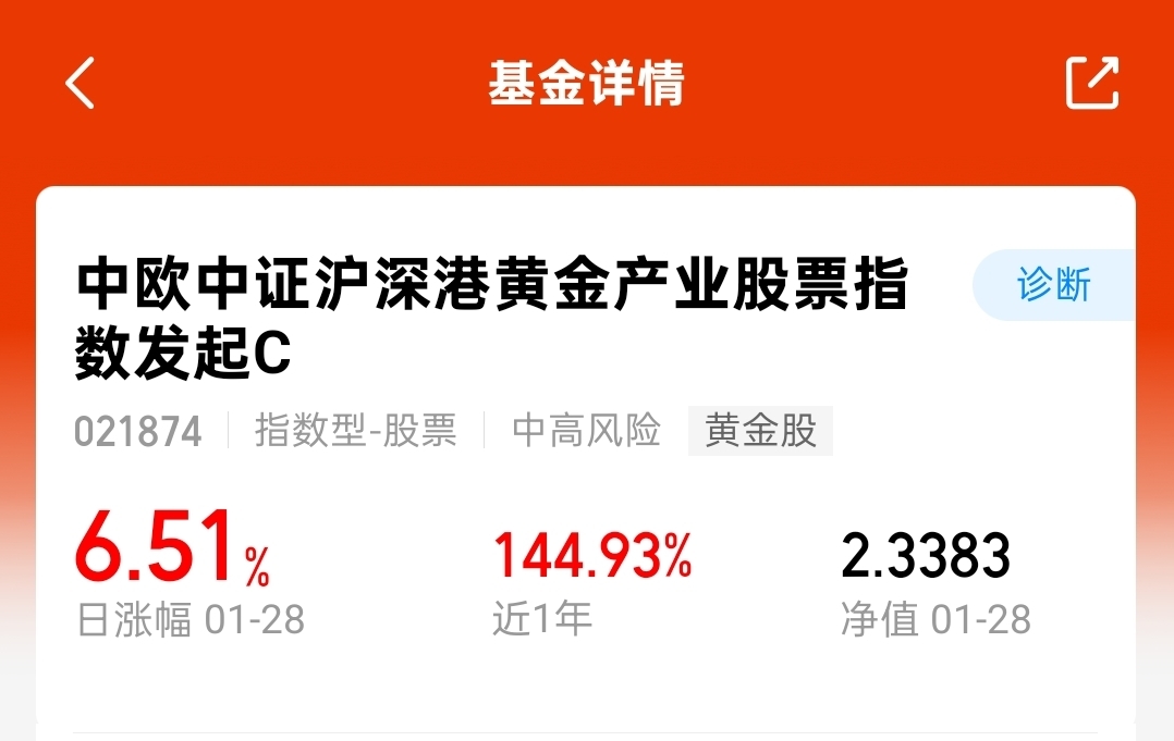 中欧中证沪深港黄金产业股票指数发起C,表现惊艳,单日大涨6.51%,近一年涨幅更是高达144.93%!该基金持仓聚焦沪深港三地优质黄金产业链上市公司,像紫金矿业、山东黄金、中金黄金等都在其中,美元信用不断走弱,全球央行购金趋势仍在延续,黄金和有色金属的配置价值持续走牛,即便回调后还能涨。