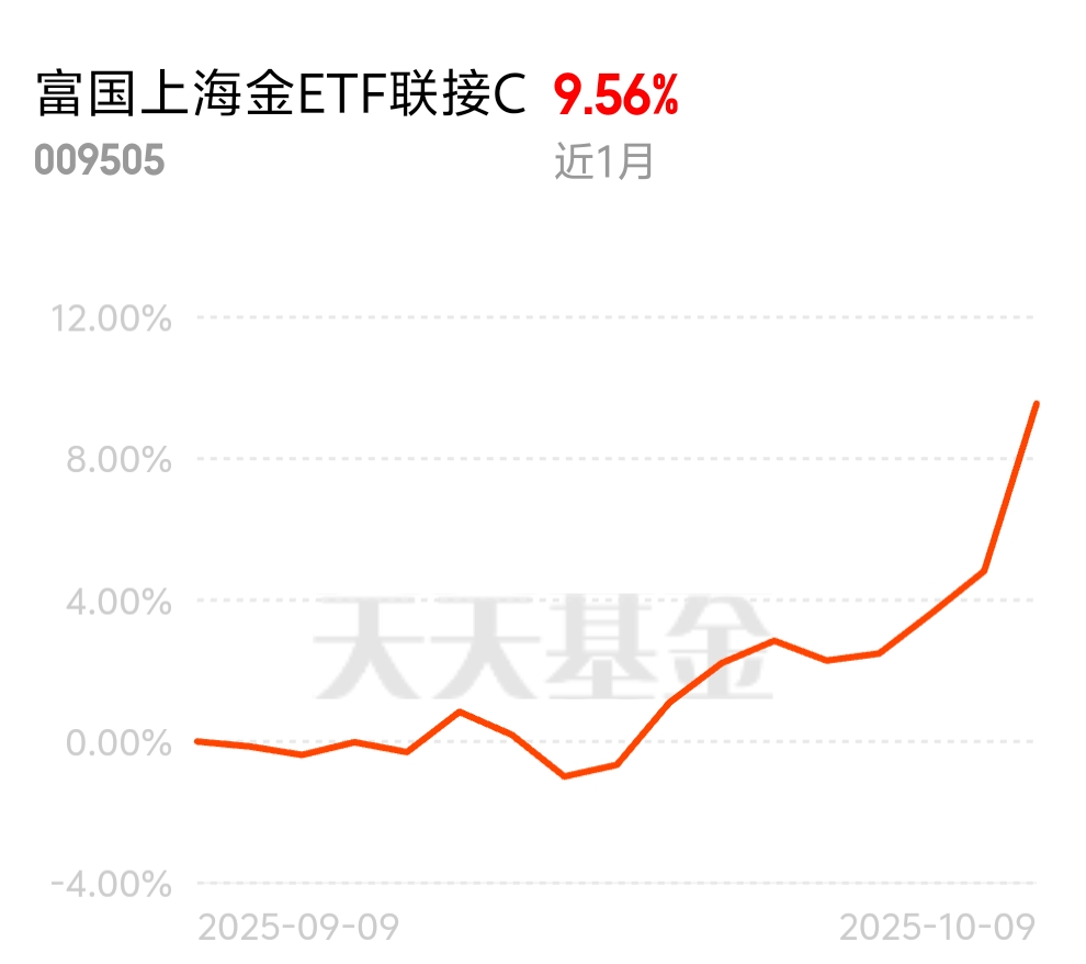 黄金最近想起来了,创新高。富国上海金一个月收了9.56%。