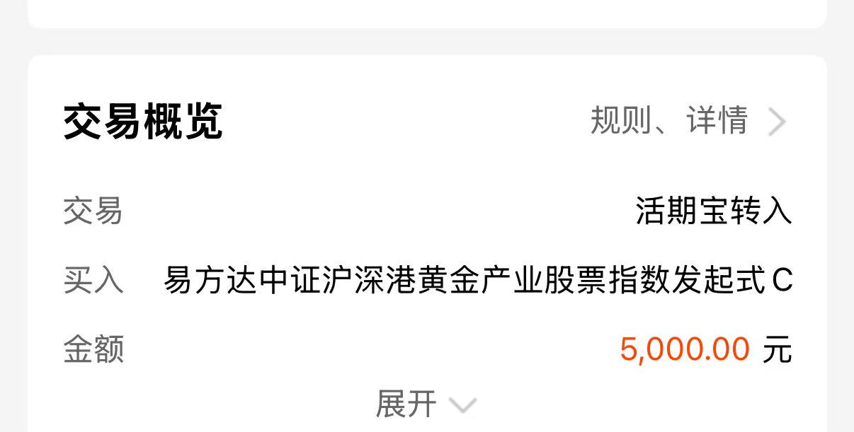 黄金真的太强了,短期利好不断,本来回调几天的,又遇到税率这个事情,导致资金继续抱团,国际投行也是纷纷上调预期,从走势看,明显拉出了阳线,现货黄金涨幅有点多了,我入一份$易方达中证沪深港黄金产业股票指数发起式C$ ,昨天上涨3.56%,近三个月44.81%,比现货黄金更猛,牛市黄金股的上涨弹性会更大,短期业绩优于同类,再看目前欧美股市很强,我在这边找机会。