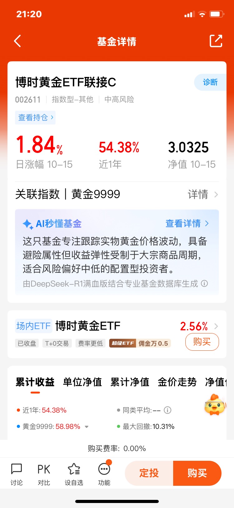 作为996打工人,实在没精力盯盘。$博时黄金ETF联接C(OTCFUND|002611)$跟踪的是上海金现货价,省去了我研究个股的麻烦。就像把黄金存在云端钱包,还能每天看到收益,比买实物金条省了鉴定费和保管费。持有的最大体会就是省心。