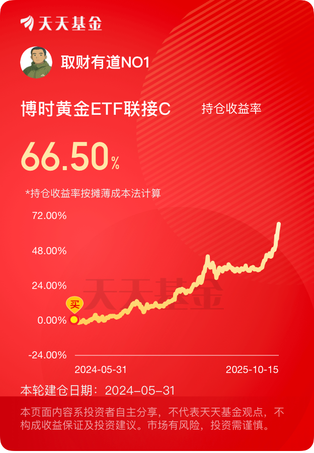 国庆假期后的第一个交易日,我习惯性打开交易软件,金价突破4000美元的消息像一道闪电击中了我。作为职场新人,去年买的$博时黄金ETF联接C(OTCFUND|002611)$居然悄悄涨了63.5%。这让我意识到原来最古老的货币,正在这个数字时代上演着最硬核的逆袭。今天,和大家聊聊我黄金投资的那些事儿。