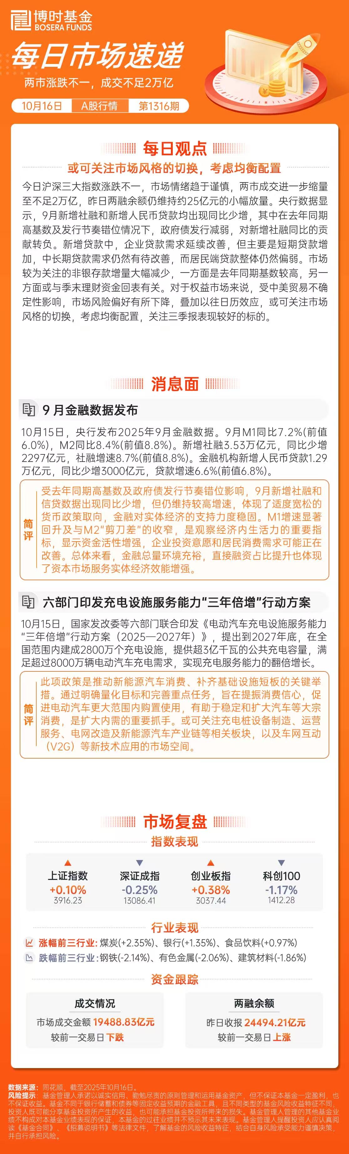【博时市场点评10月16日】两市涨跌不一,成交不足2万亿