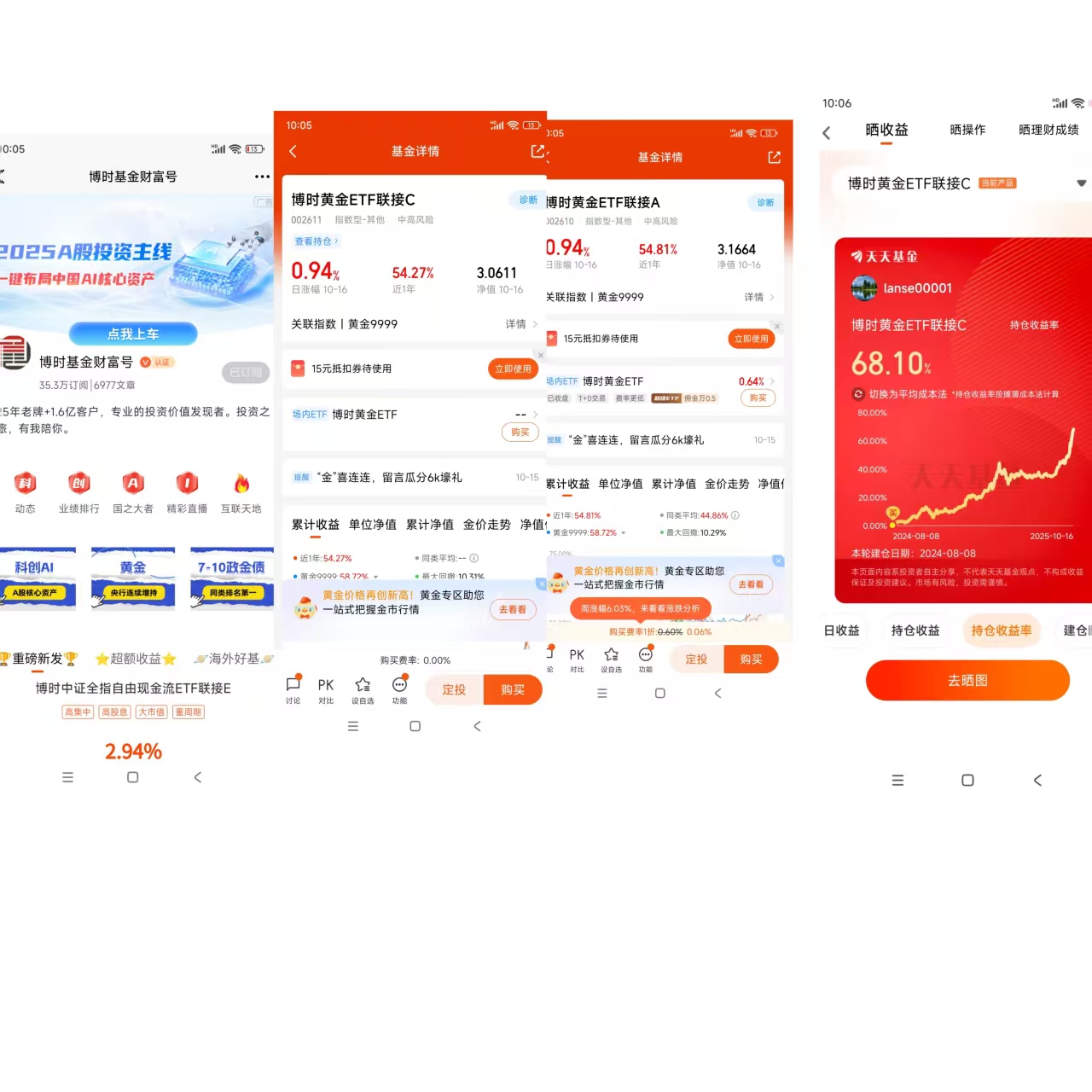 在认识到我的价值后,下一个问题是如何高效地拥有我?传统上,投资我可以选择金条、金币等实物形式,但这类方式存在储存难、交易成本高、流动性受限等挑战。相较之下,博时黄金ETF联接C(基金代码:002611)为代表的新型投资工具,为现代投资者提供了更便捷的参与方式。这支基金拥有几大独特优势:它让你无需研究复杂的黄金期货,也不必担心实物储存难题,通过常规基金账户即可间接持有上海黄金交易所的黄金现货合约。其C类份额设计尤其适合灵活配置——持有超过7天即可免赎回费,这为希望把握短期机会或需要灵活调整仓位的投资者提供了极大便利。从绩效表现看,这只基金在过去一年中取得了显著回报,展现了在黄金牛市环境下的强大跟踪能力。背后有博时基金这样的老牌管理机构提供专业支持,确保基金净值能够紧密跟踪国内黄金价格走势,让普通投资者也能精准分享由我带来的财富增值机会。