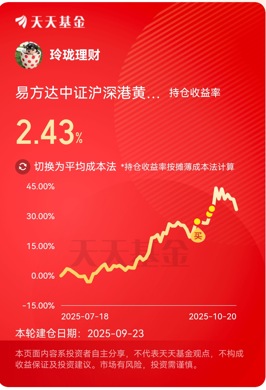 一直拿着的,近一个月涨幅9.90%,近三个月涨幅33.40%,业绩真优秀,美联储可能在年内重启双降息节奏,从而进一步压低实际利率水平,再加上美元指数在本周下滑,资金自然流入金市长期投资逻辑一直在。