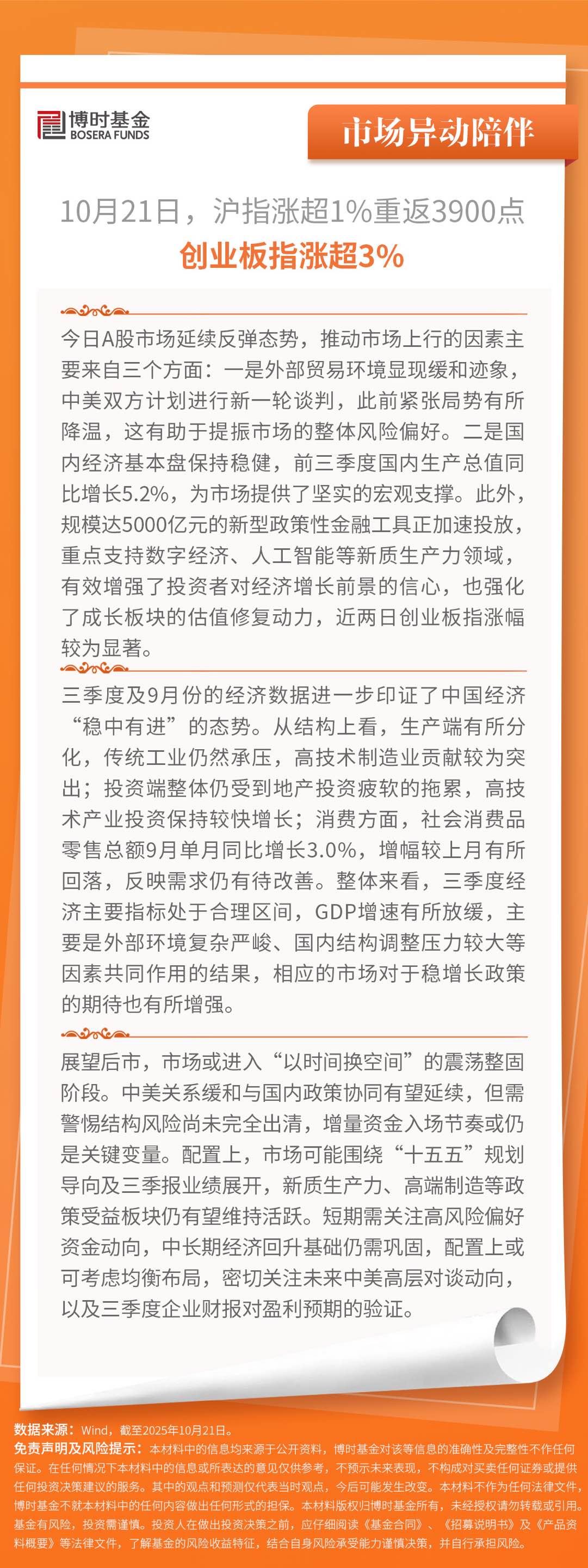 【异动陪伴】沪指涨超1%重返3900点,创业板指涨超3%