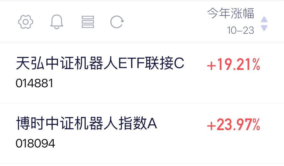 $天弘中证机器人ETF联接C$今年涨幅19.21%还可以的呢!
