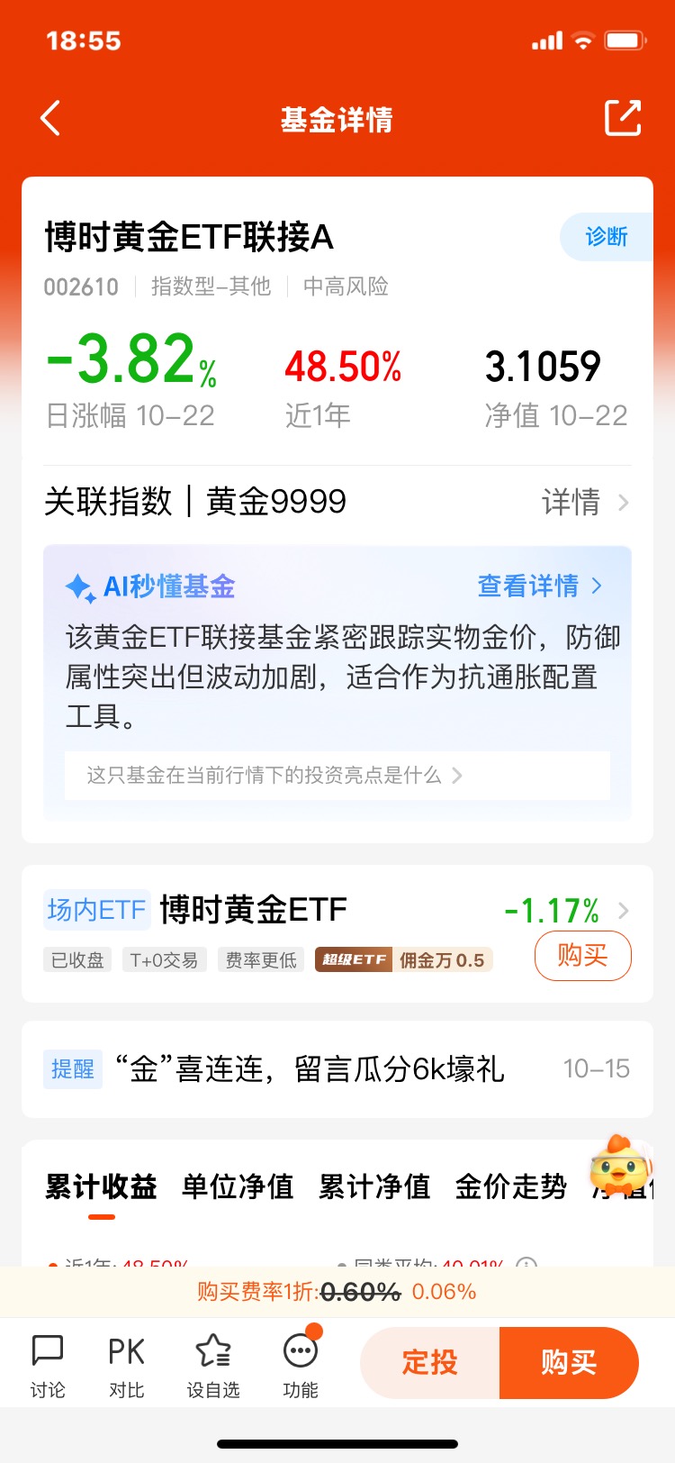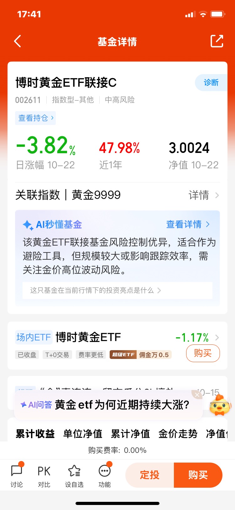 当初在众多黄金投资工具中,我最终选择了$博时黄金ETF联接C(OTCFUND|002611)$,这个决定基于几个方面的考量: